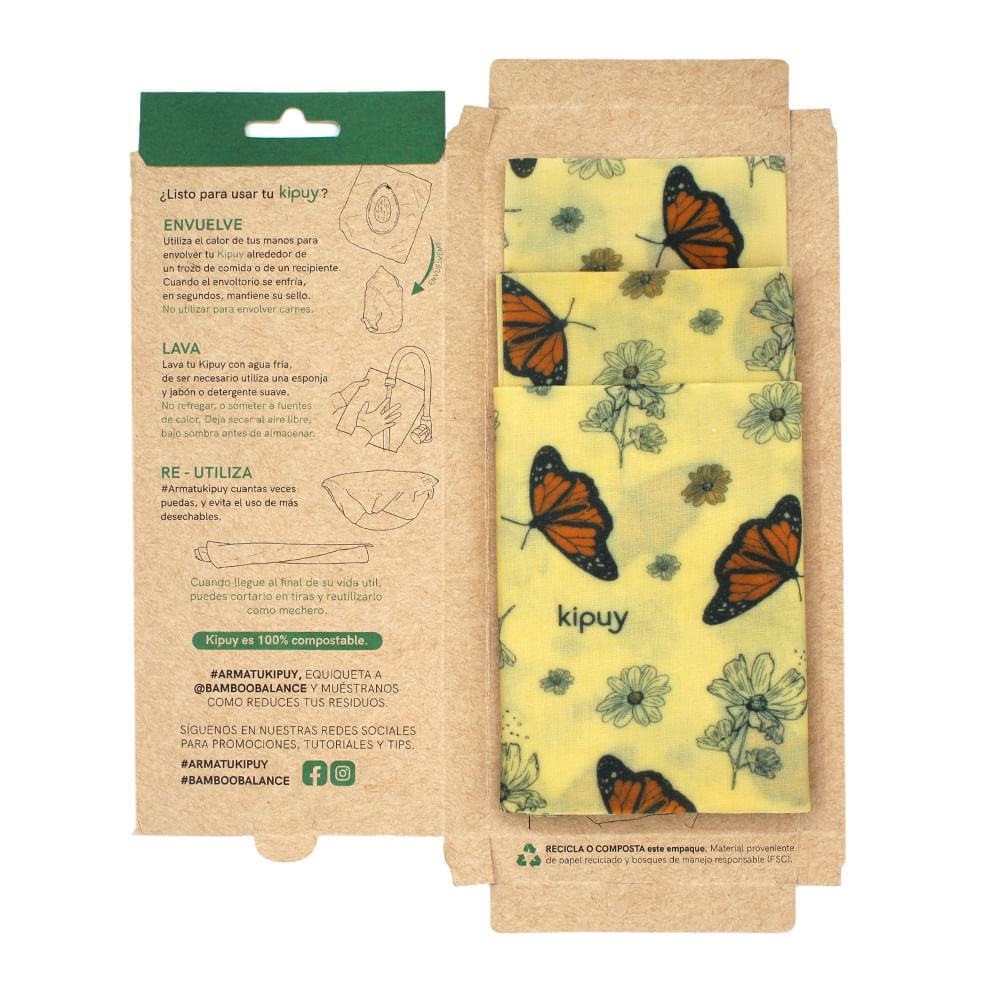 Envoltorios para Alimentos Kipuy Tripack Mixto Impresión Textil Mariposa | Oechsle