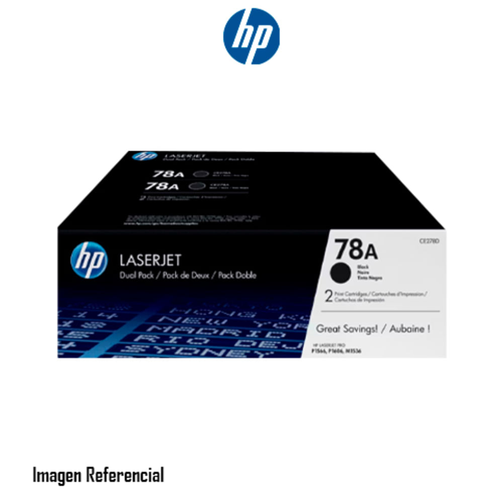 TONER HP 78AD DUAL PACK, COLOR NEGRO C/U 2100 PAGINAS, PARA HP LASERJET PRO P1566 P/N: CE278AD | Oechsle