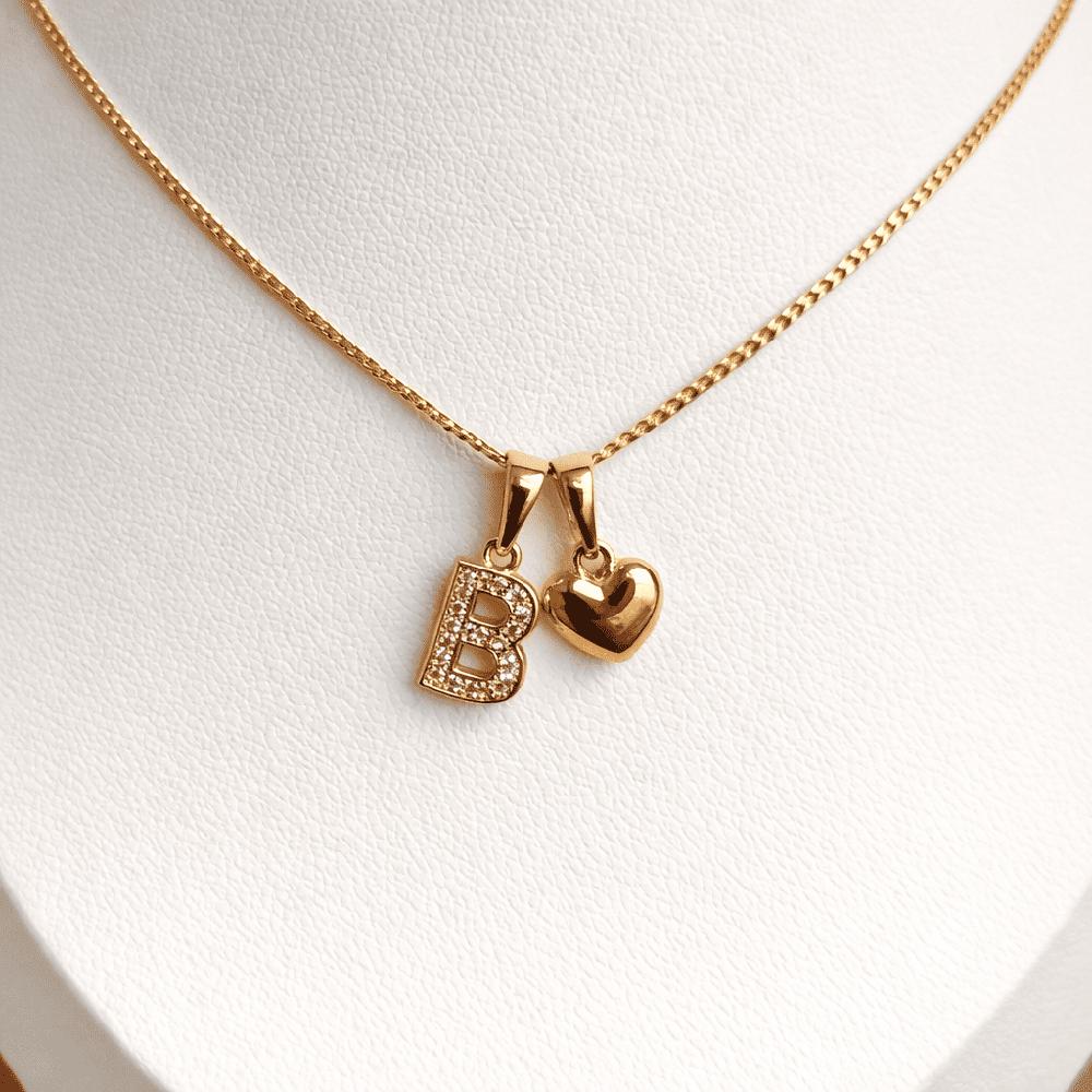 COLLAR LETRA B Y CORAZON BAÑADO EN ORO ROSA 18 KILATES | Oechsle