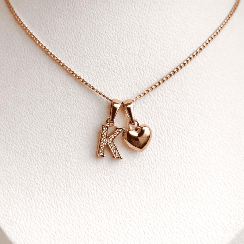 COLLAR LETRA K Y CORAZON BAÑADO EN ORO ROSA 18 KILATES | Oechsle