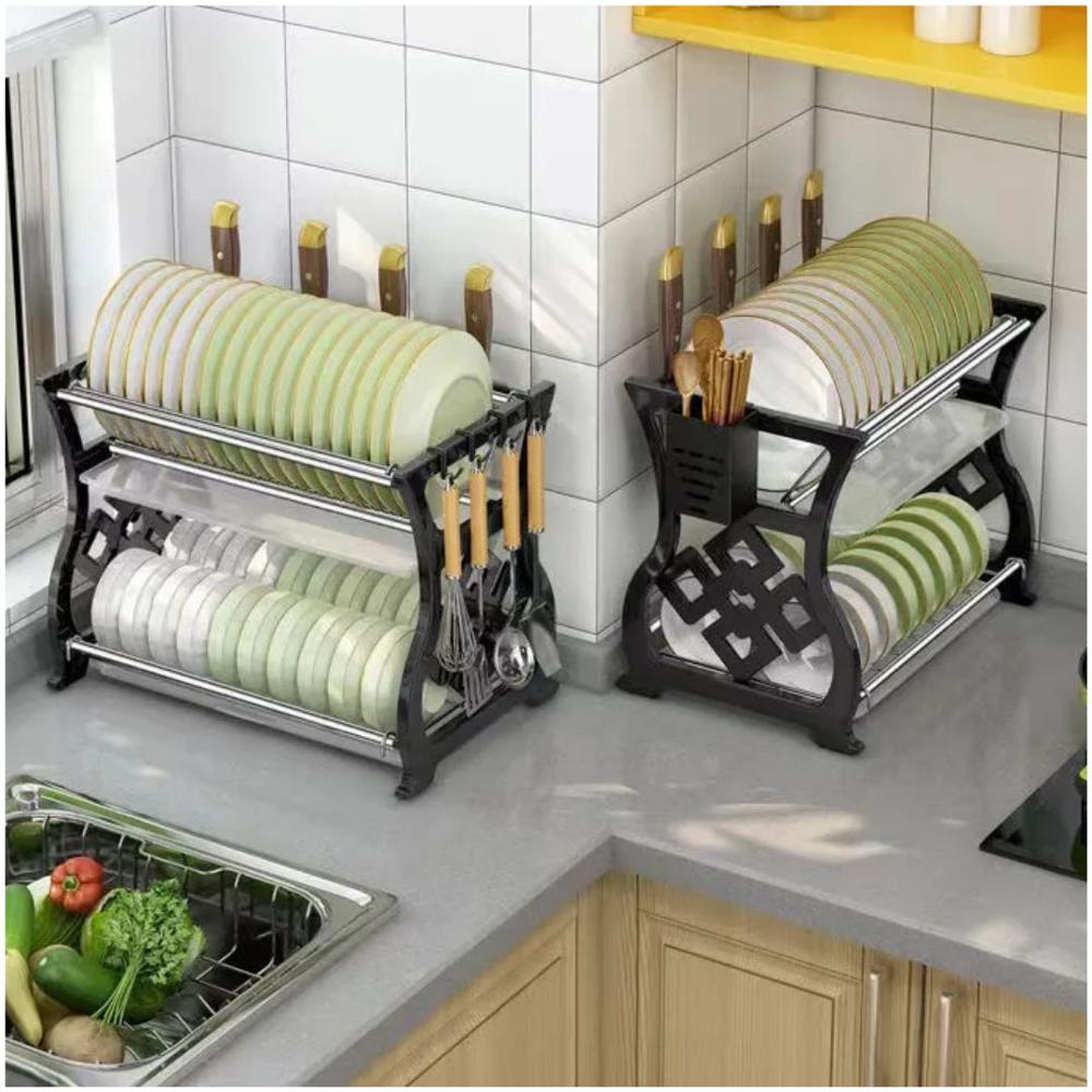 Escurridor de Platos Vasos Acero al Carbono con Sistema de Drenaje 16.5x42x30cm