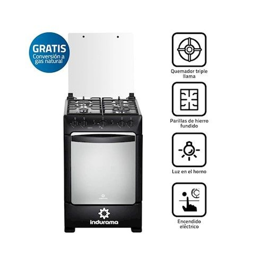 Cocina a Gas Indurama Pompeya 4 Quemadores - Negra | Oechsle