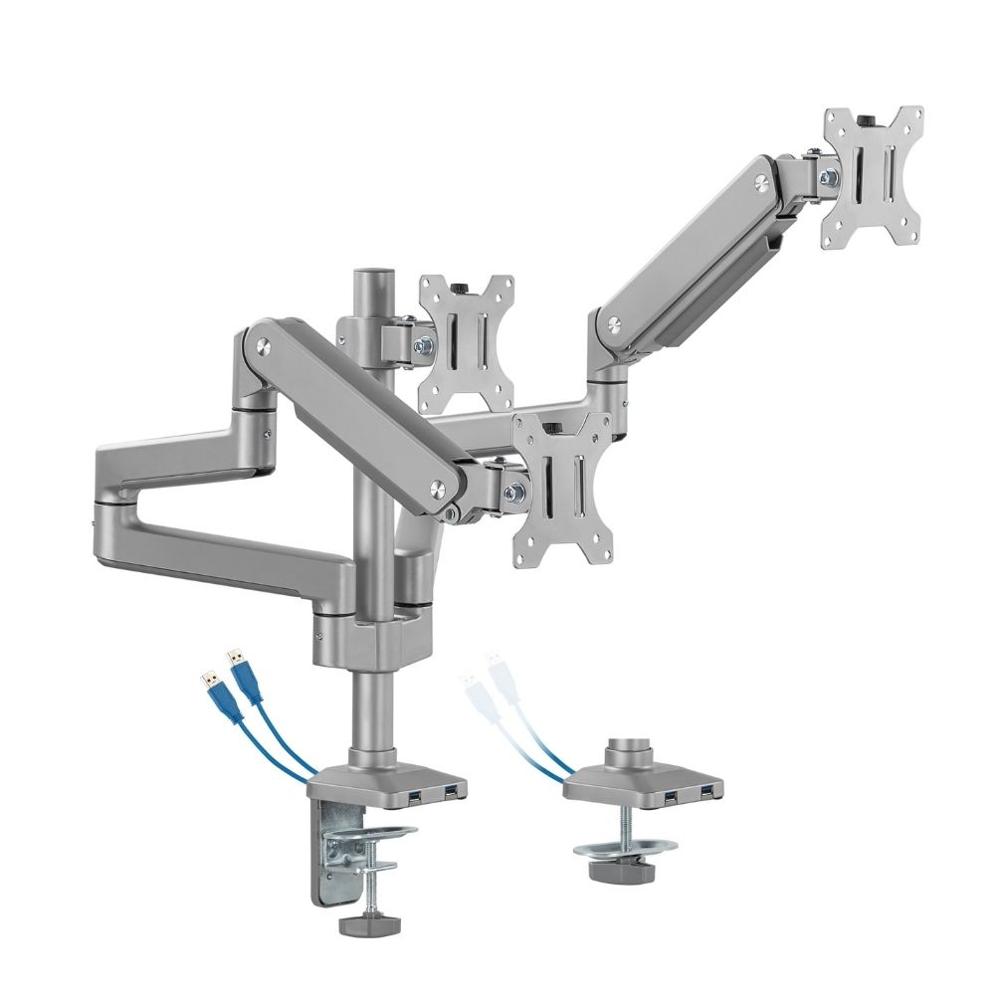 RACK SOPORTE DE ESCRITORIO ERGONOMICO PARA 3 MONITORES 17 A 32 PULGADAS CON PUERTOS USB GMK53-36UB