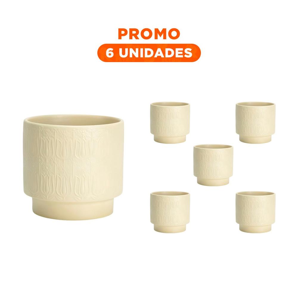 Pack6 Cubo Cilindro Ceramica 13x13cm Crema Para Tulipanes Flores Moderno | Oechsle