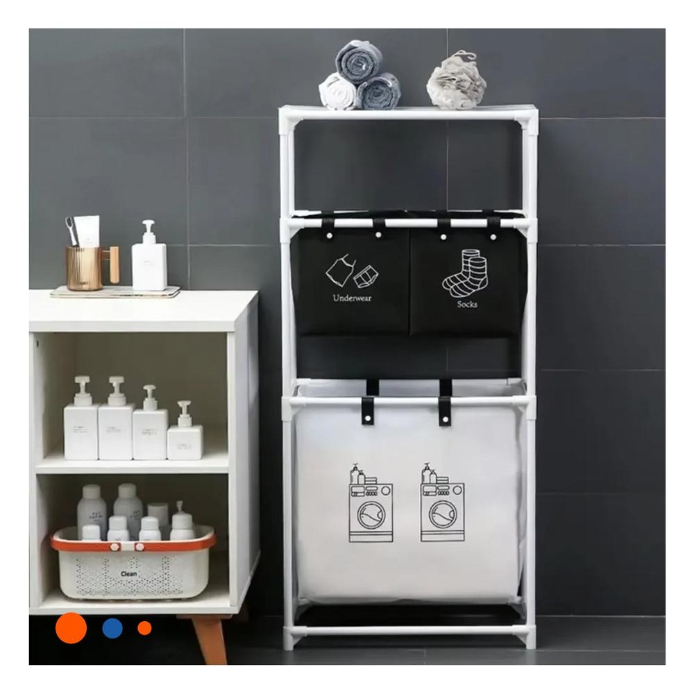 Carro Ropa Sucia 3 Niveles Almacenaje Eficiente con 3 Cestos Negro Blanco Y+Post It | Oechsle
