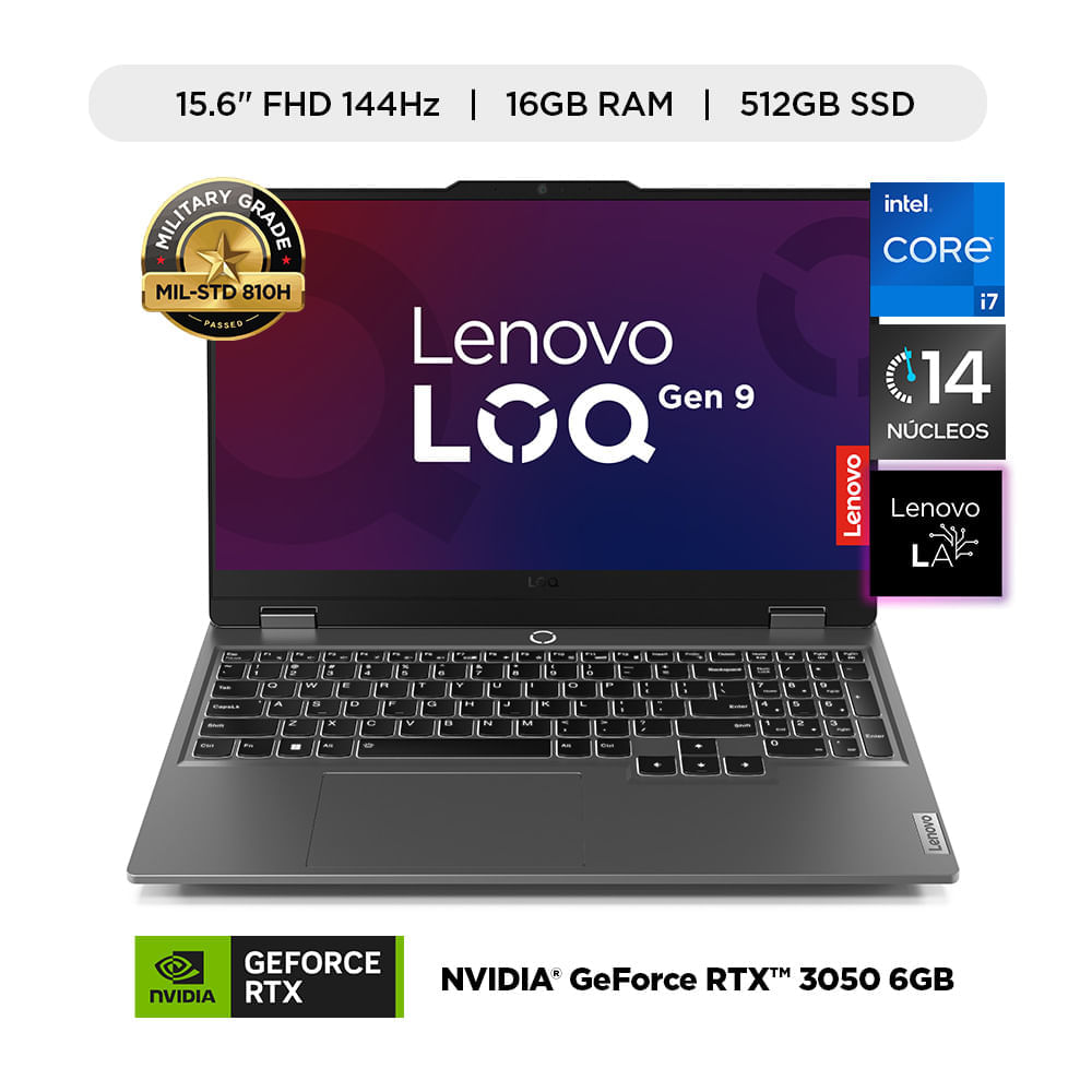 Laptop gamer Lenovo LOQ Intel Core i7-13650HX 16GB RAM 512GB NVIDIA RTX 3050 6GB 15.6"" FHD 144Hz | Plazavea