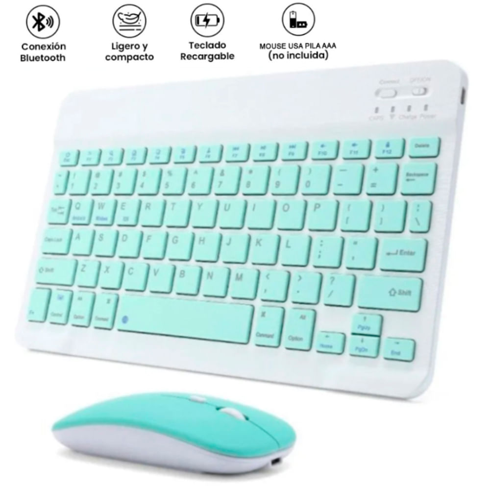Kit Teclado Y Mouse Bluetooth Recargable Pc Tablet iPad Turquesa | Plazavea