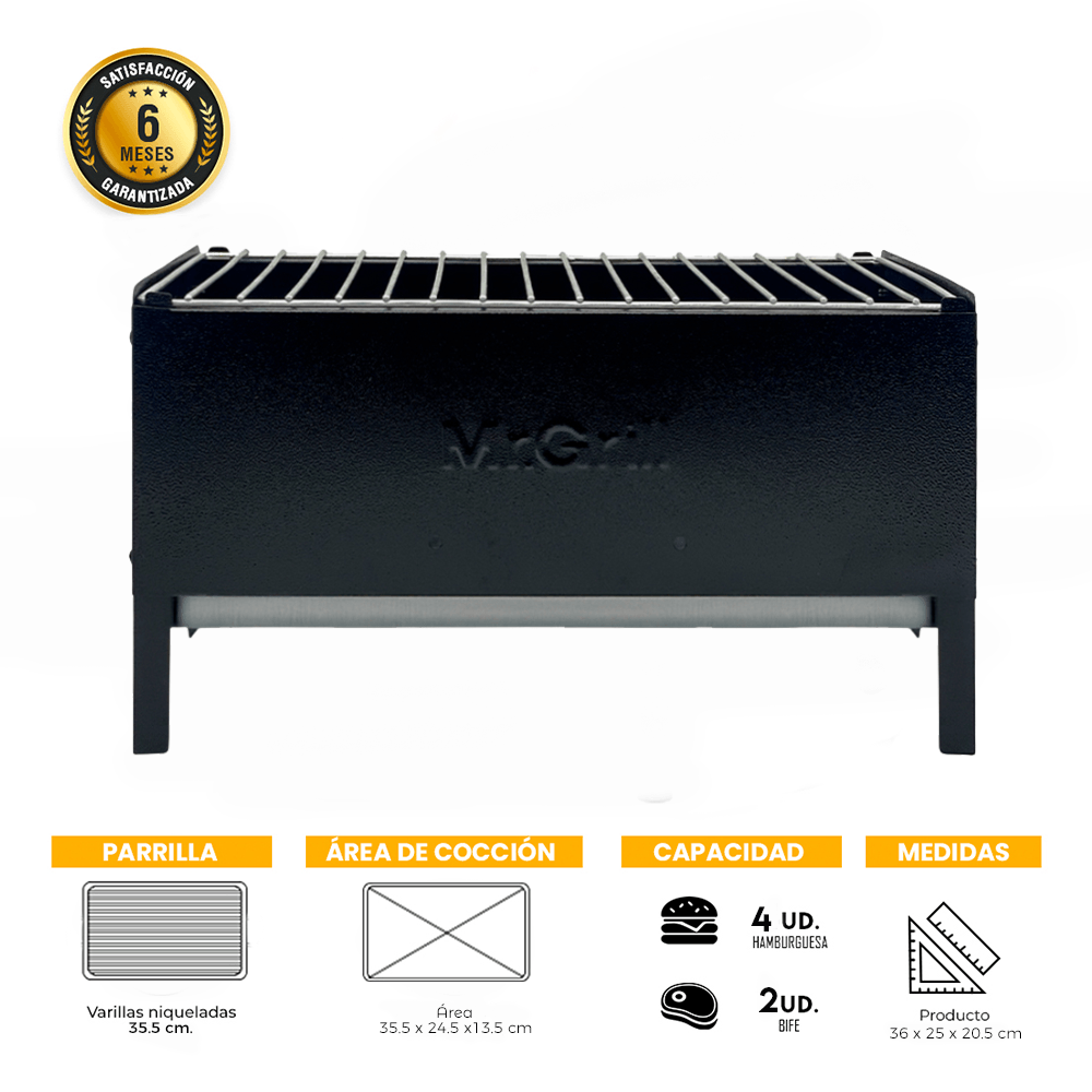 Parrilla Portatil Grill Niveles Chica Negro