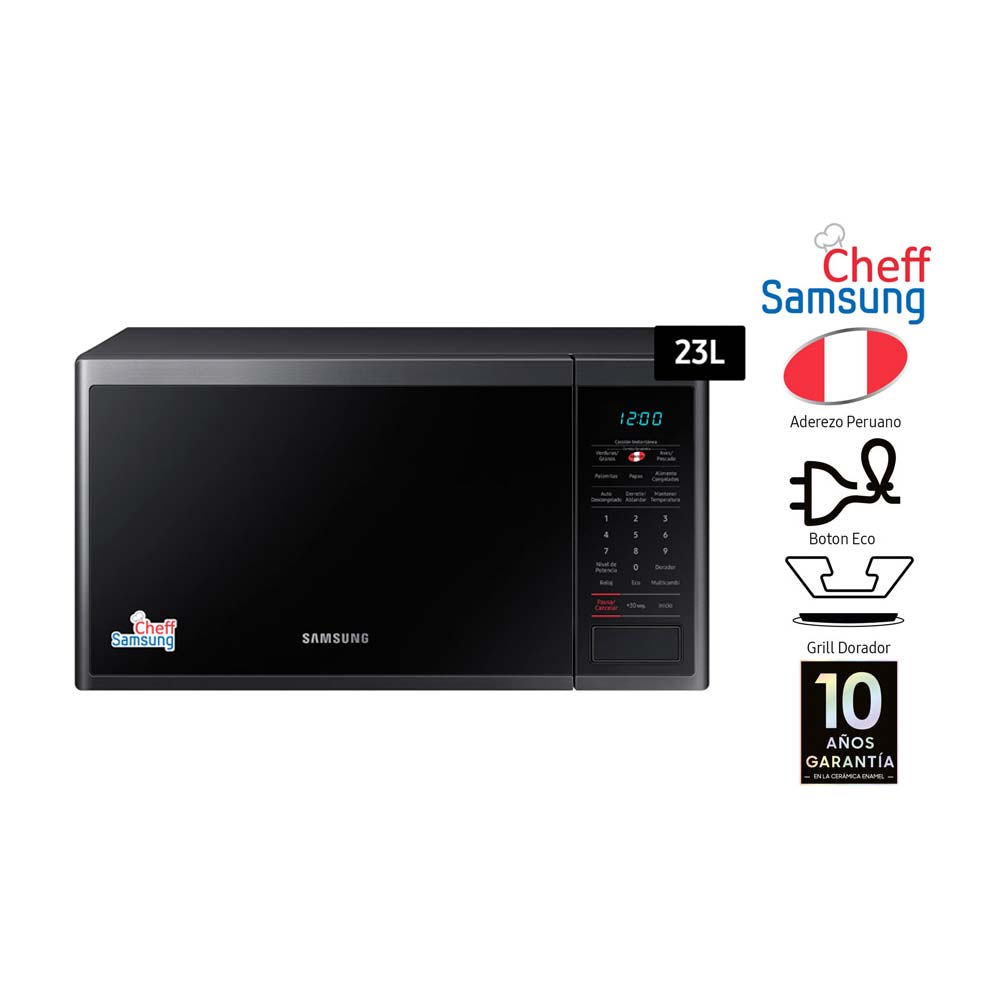 Producto AnteriorMi búsquedaRelevanciaProducto SiguienteBarbiquejo de Seguridad Bellsafe con Mentonera Ajustable en PVC NegroProducto AnteriorProducto SiguienteHorno microondas Samsung Grill MG23J5133AG/PE 23 litros | PromartProducto no disponible en knastaEste producto ya no se encuentra disponible en knastaPrueba buscando otros productos en:MicroondasPOtras recomendacionesS/ 529.00S/ 529.00S/ 529.00Prueba buscando otros productos en:MicroondasPProductos relacionadosHORNO MICROONDAS SAMSUNG MG23DG4524AGPE 23 LITROSS/ 529.00OechsleHORNO MICROONDAS SAMSUNG MG23DG4524AGPE 23 LITROSS/ 529.00PromartHorno Microondas Samsung 23 Lts con Dorador Grill MG23DG4524ATPES/ 499.00S/ 529.006%OechsleHORNO MICROONDAS PANASONIC - NN-GT34JBRPK 23 LITROS NEGROS/ 439.00S/ 419.004%OechsleHorno Microondas Samsung 23L Negro MG23DG4524ATPE con GrillS/ 449.00S/ 599.0033%PromartHorno Microondas Cheff Samsung con Grill Dorador 32L MG32DG4524AGPES/ 679.00S/ 649.004%OechsleHorno Microondas Cheff Samsung con Grill Dorador 23L MG23DG4524ATPES/ 599.00S/ 559.006%OechsleHorno Microondas Cheff Samsung con Grill Dorador 23L MG23DG4524AGPES/ 419.00S/ 579.0038%OechsleHorno Microondas Cheff Samsung con Grill Dorador 23L MG23DG4524ATPES/ 439.00S/ 599.0036%OechsleHorno Microondas Cheff Samsung con Grill Dorador 40L MG40DG5524ATPES/ 579.00S/ 729.0025%OechsleHorno Microondas LG 30 Litros con Grill NeoChef™ MH7032JAS 900WS/ 499.00OechsleHorno Microondas Samsung MG23DG4524ATPE 23L Negro Acero Inox con GrillS/ 589.00Oechsle