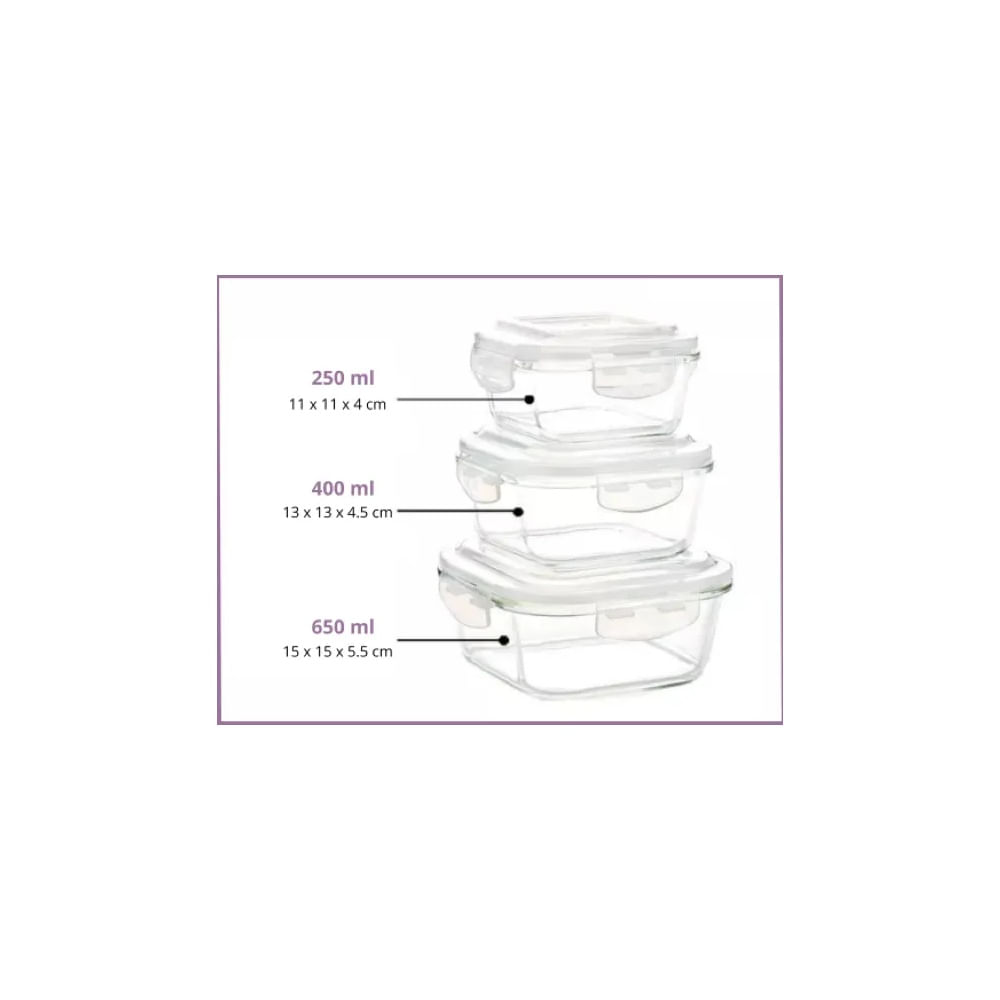 Set x 3 Recipientes de Vidrio D - Cuadrado | Promart