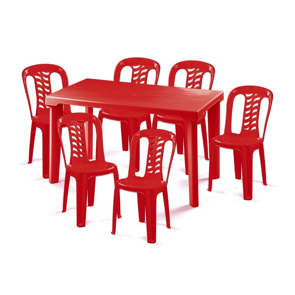Mesa Rectangular Graninka + 6 Sillas Sydney Rojo Polinplast | Promart