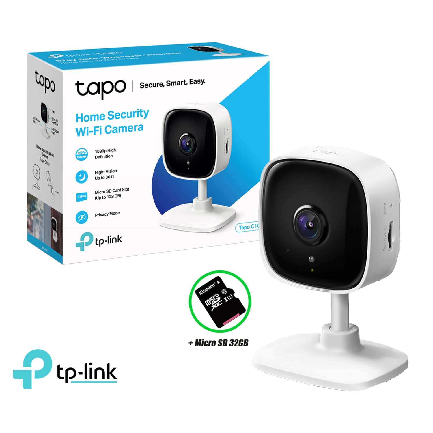 Cámara de Seguridad Wi Fi Tp Link Tapo C100 1080P Fhd Sd 32Gb | Promart
