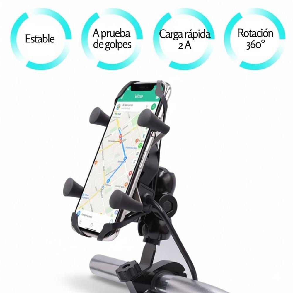 Soporte Celular para Moto 7083 Antivibraciones Cargador Carga Rápida 2A | Promart