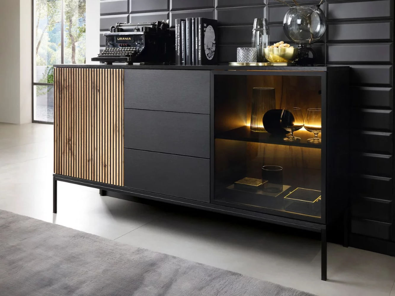 Aparador Moderno Rally con luz LED color Negro/Marrón 3 cajones TU MESITA | Promart