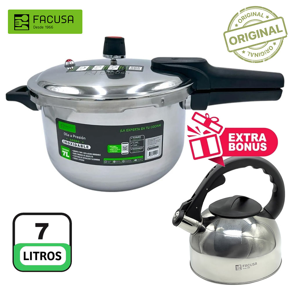 Olla a Presión Facusa 7 L Acero Inox Regalo Tetera 2.5 L | Promart