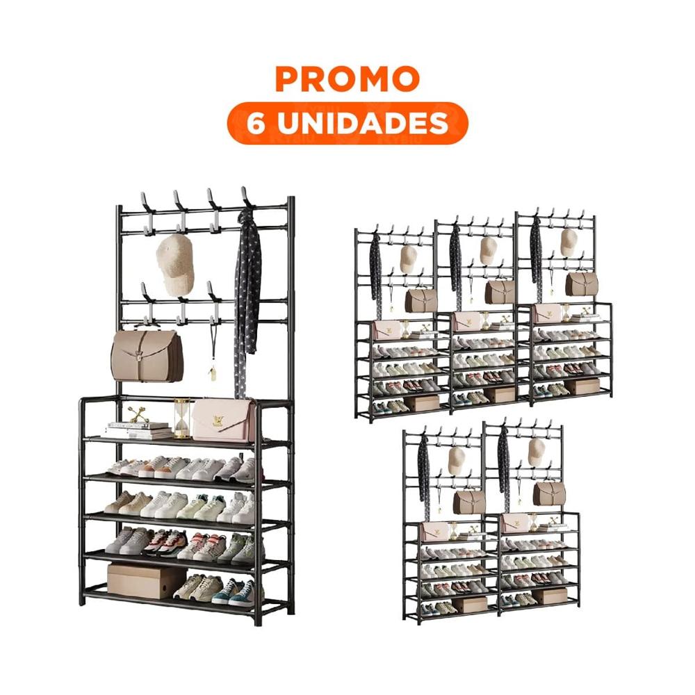 Pack6 Rack recto negro con percheros para mantener zapatos siempre a mano | Promart