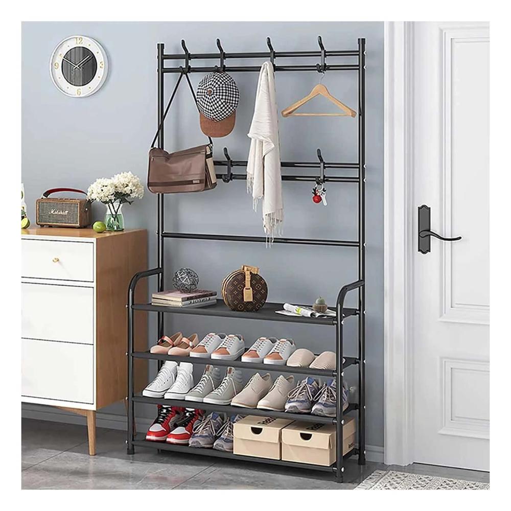 Pack2 Mueble Curvo con Zapatera y Percheros Negro para Dormitorio Y+Papel Regalo | Promart
