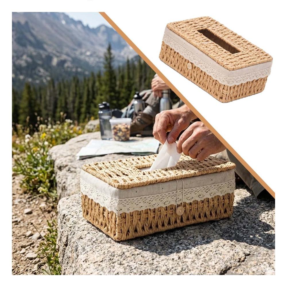 Servilletero Tejido con Forro Interior Tela Beige 20x14x9cm Mesa Y+Ligas Regalo | Promart