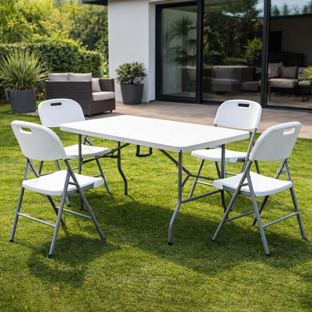 Combo Terraza 5 Piezas Mesa Plegable 180 cm 4 Sillas Blancas | Promart