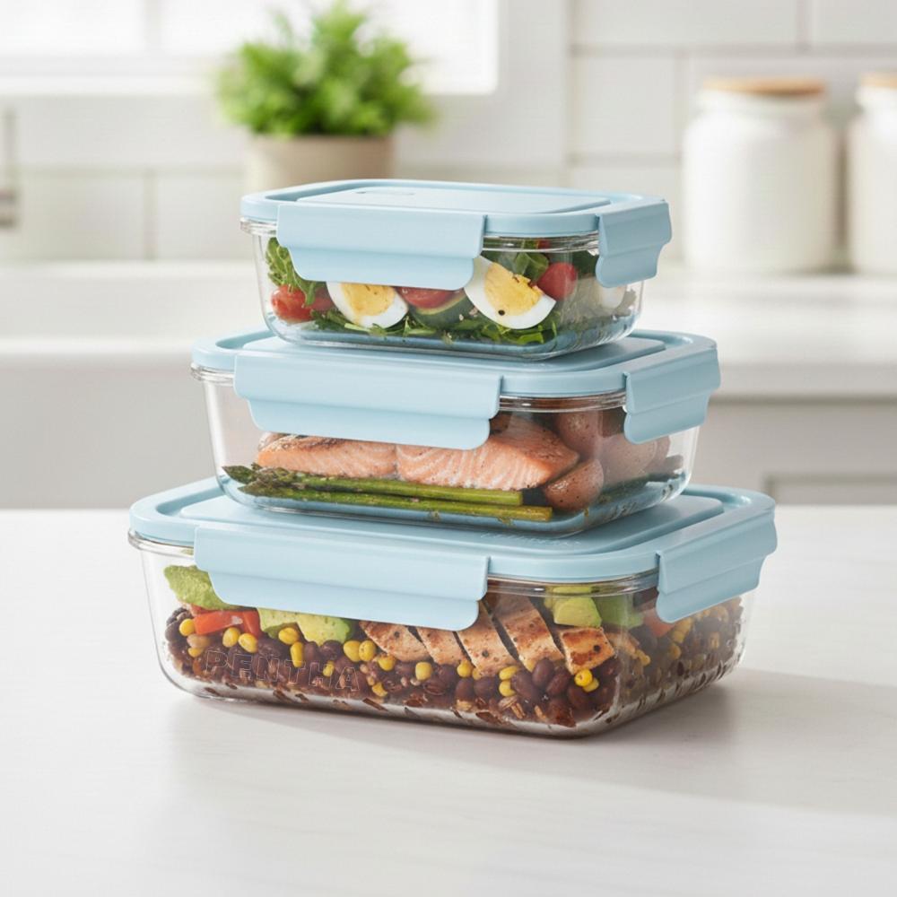 Set 3 Tapers Herméticos De Vidrio Con Tapa - Azul | Promart