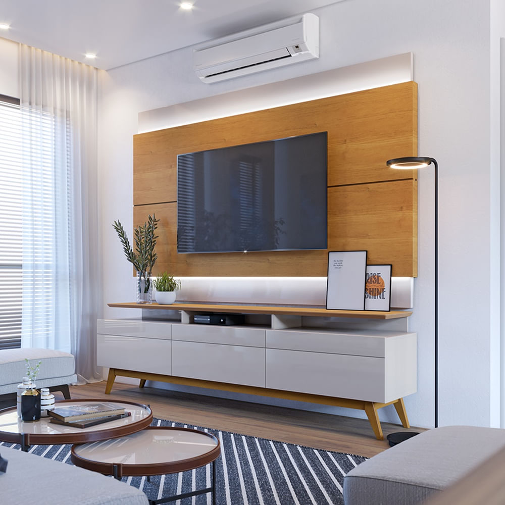 COMBO MESA DE TV STAND PANEL CLASSIC LED 1.8 NATURE OFF WHITE | Promart
