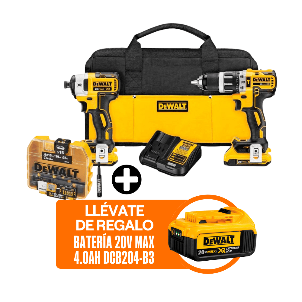 Combo Dewalt: Taladro Percutor + Atornillador de Impacto + Taladro Atornillador + Esmeril Angular + 50 Accesorios + 2 Baterias + Cargador + MaletaS/ 1,099.00Promart