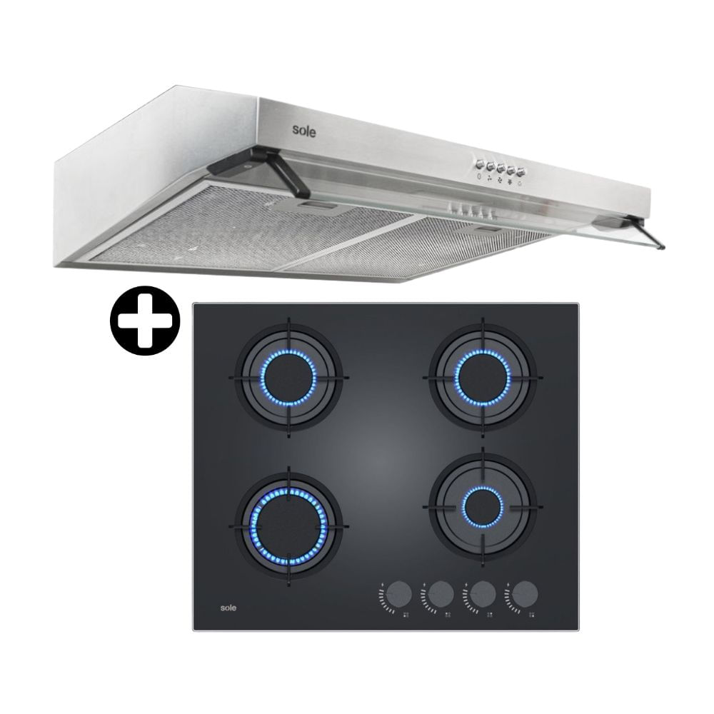 COMBO Sole: Cocina Empotrable Solco049V2 4 hornillas + Campana Extractora Convencional 60cm Nueva Roma 1 Motor Acero Inoxidable | Promart