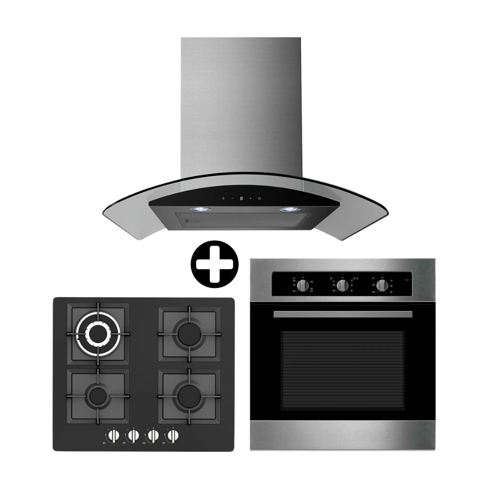 COMBO Klimatic: Cocina empotrable Vulcano 4 hornillas + Campana extractora decorativa Aria 60cm + Horno empotrable a gas