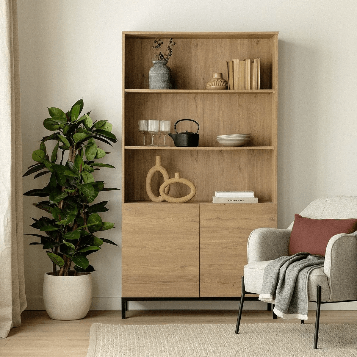 Aparador con Estanteria Nórdico Fausto color Duna TU MESITA | Promart