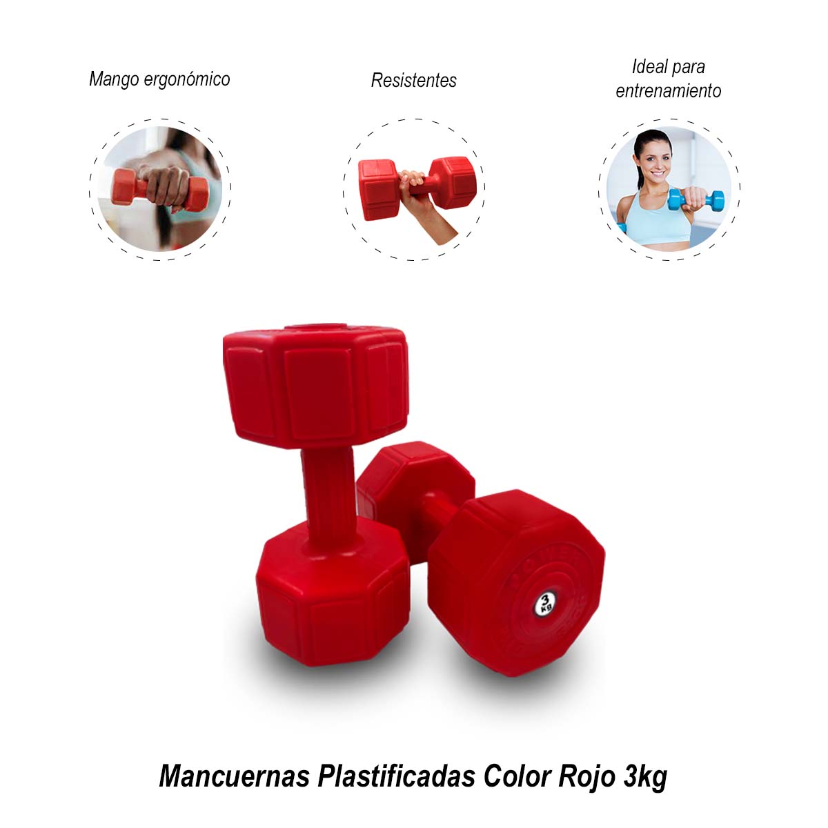 Mancuernas Plastificadas Color Rojo 3kg | Promart