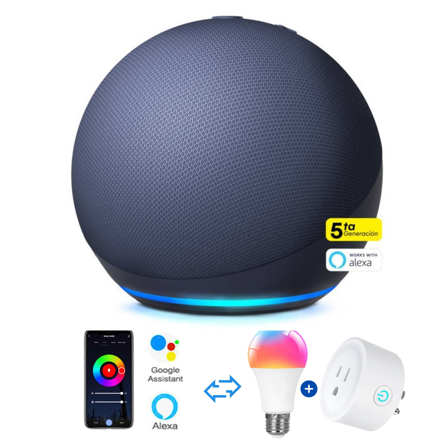 Amazon Alexa Echo Dot 5ta Gen. Azul + Foco inteligente + Enchufe inteligente | Shopstar