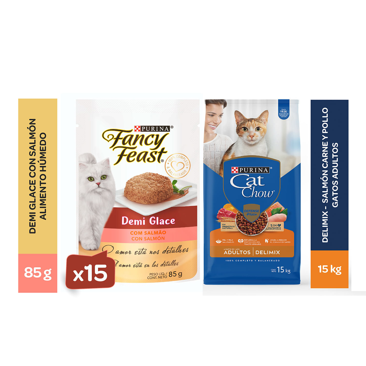 ALIMENTO DE GATO CAT CHOW DELIMIX 15KG + FANCY FEAST DEMI GLACE SALMON (X15) | Shopstar