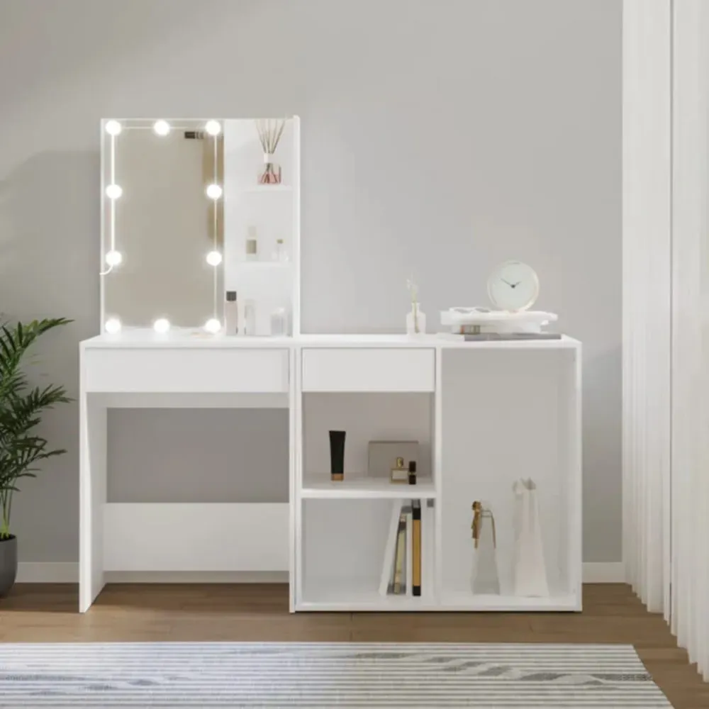 Tocador Moderno con Luces Evans color Blanco TU MESITA con espejo